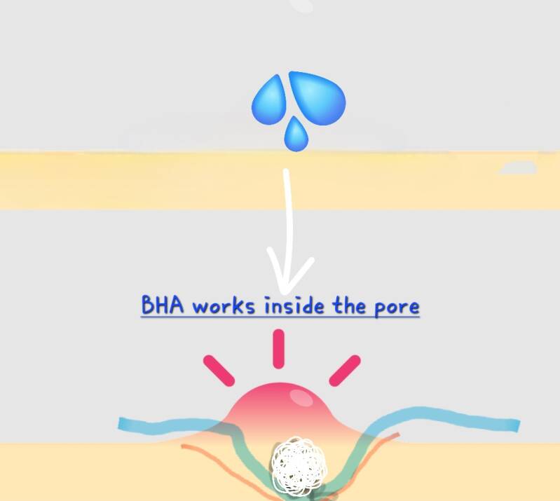 - BHA är stormolekylär så den verkar bara på översta lagret av huden men effektivt och får bort orenheter från porerna.